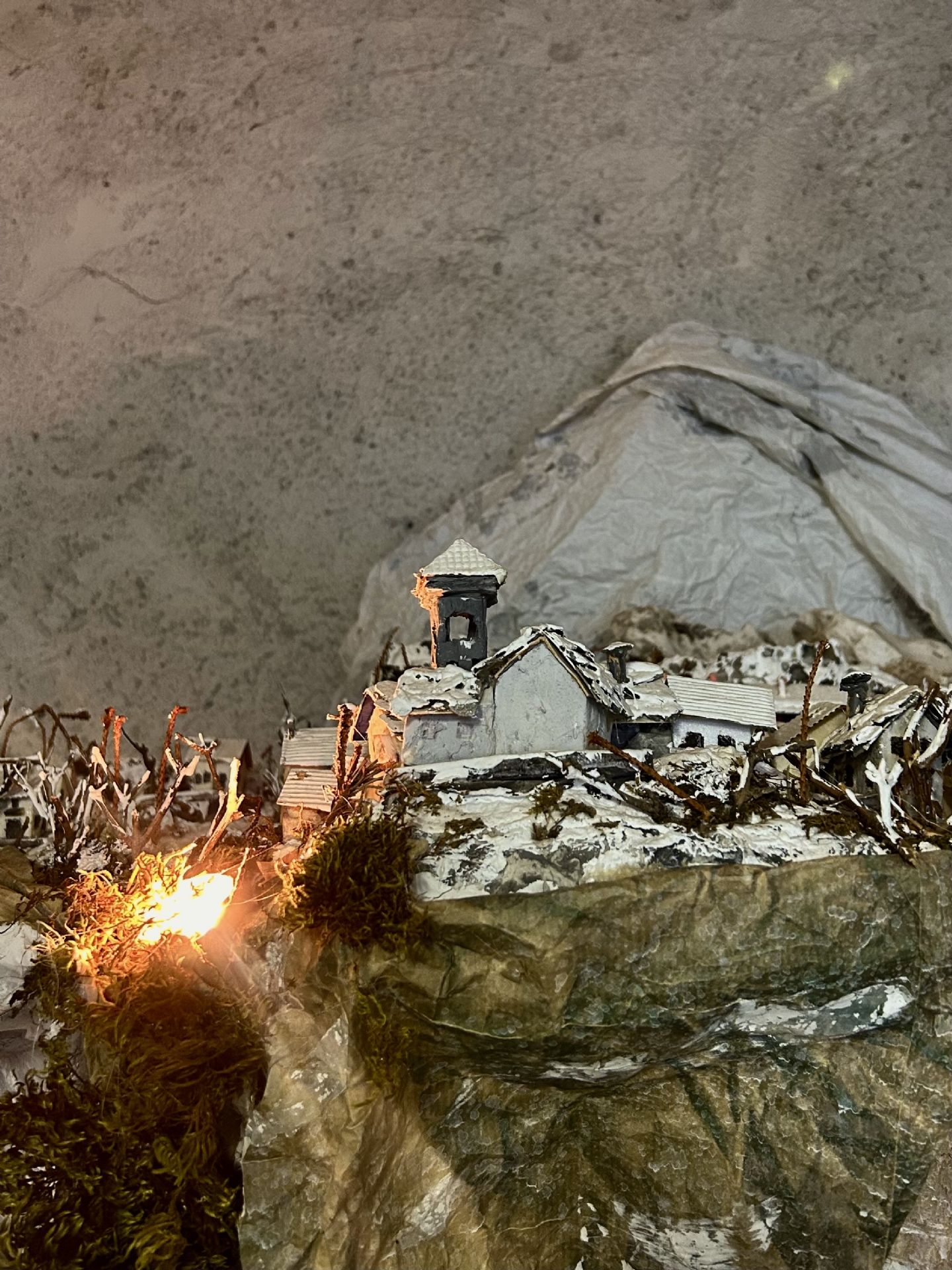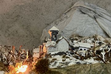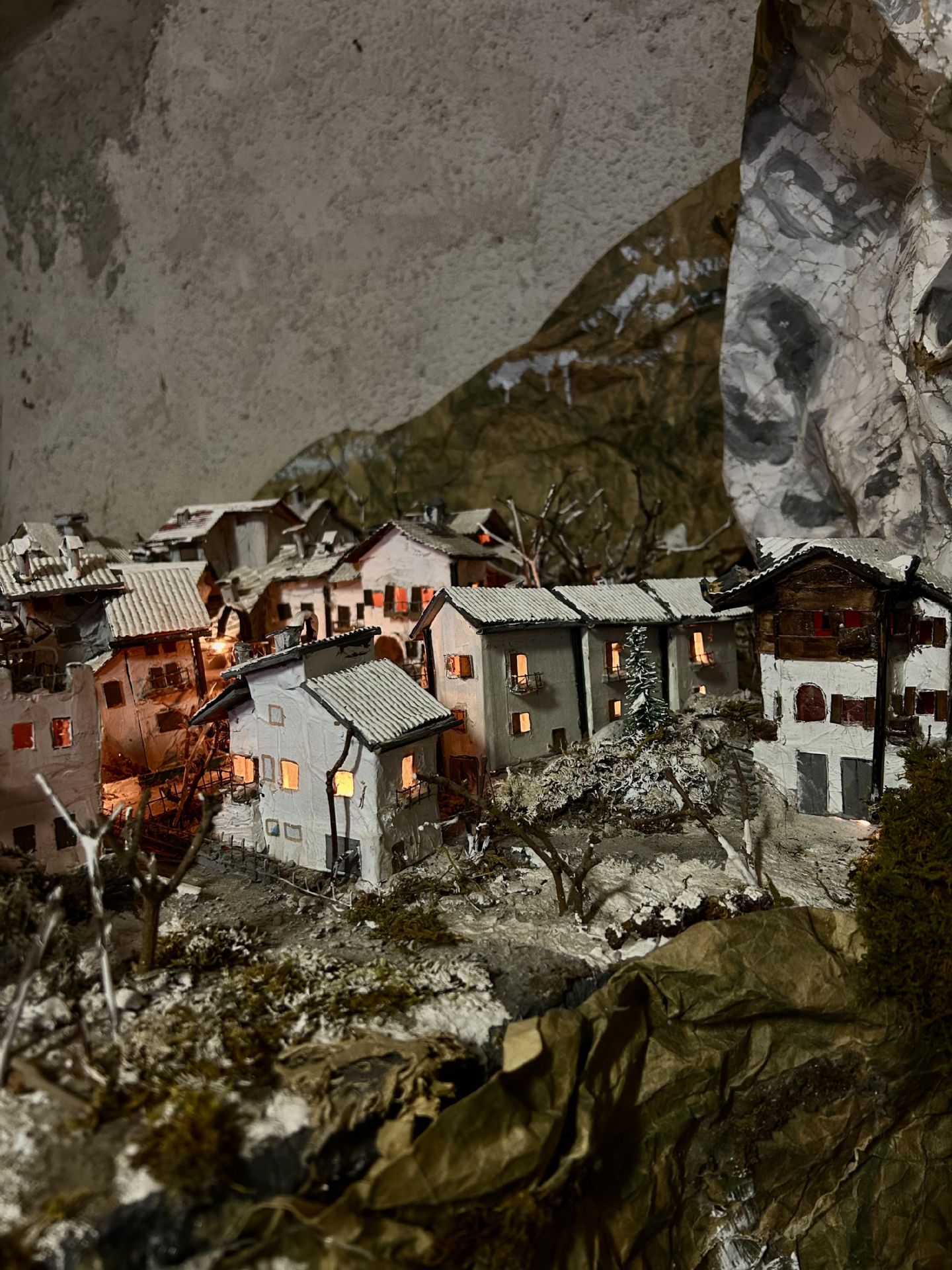 All’interno del presepe trovano spazio anche le rappresentazioni fedeli della borgata Arnodera e della borgata Madonna della Losa, poste come due paesi più distanti che dialogano con il centro della scena. Sono luoghi riconoscibili, ricreati con precisione e memoria, quasi fossero cartoline tridimensionali che permettono di ritrovare scorci reali all’interno di un racconto simbolico.