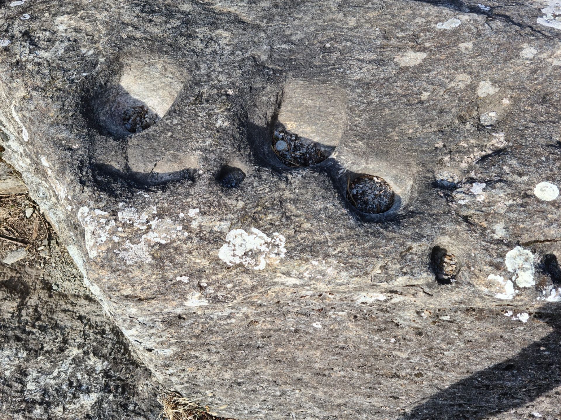 Vicino alle impronte, vi sono altre incisioni, che aiutano a spiegare la vera origine storica. Si tratta di 6 piccole coppelle segni di antico culto pagano: i sacerdoti druidi, infatti, sacrificavano vittime (anche umane) alle divinità celtiche e, da come il sangue si disponeva nelle coppelle, traevano delle profezie.