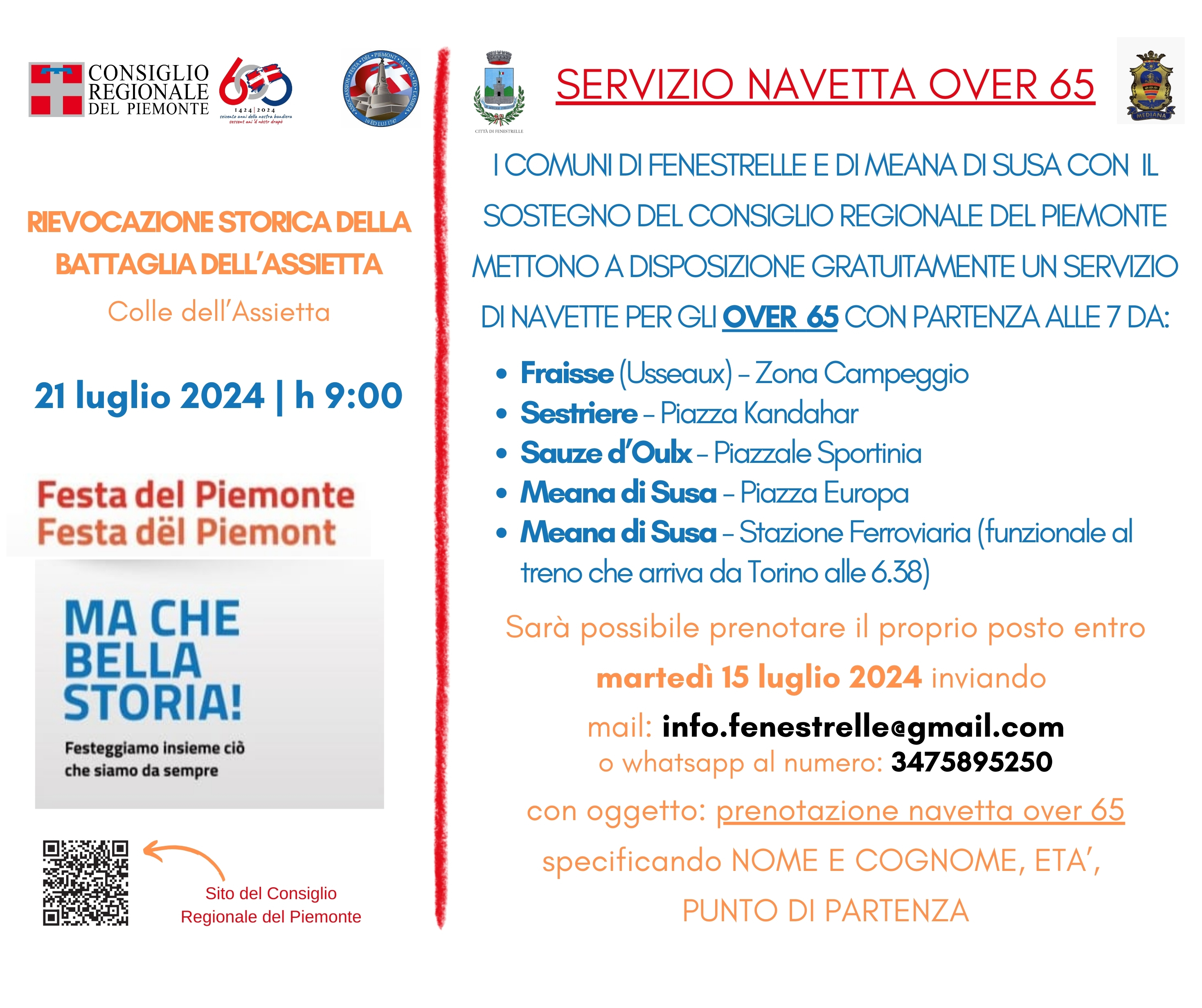 E' disponibile un servizio di navette per gli over 65 da prenotare entro martedì 15 luglio 2024.