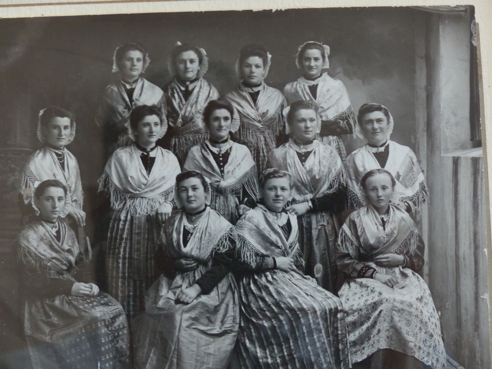 è caratterizzato dalla veste di panno scuro a grosse pieghe e dal grembiule di seta legato con ricchi nastri, eredità di una specie di bustino ancora in uso fino a pochi decenni fa. Il costume femminile ha molti punti di contatto con il costume francese-savoiardo: il fazzoletto, infatti, è incrociato sul petto, con lembi svolazzanti sulle spalle. La cuffia di piqué ha bordi larghi e spioventi e la croce che pende sulla “gorgiera” sostenuta da un nastrino derivante dai classici dorini cinquecenteschi. Le calze sono bianche e le scarpe nere